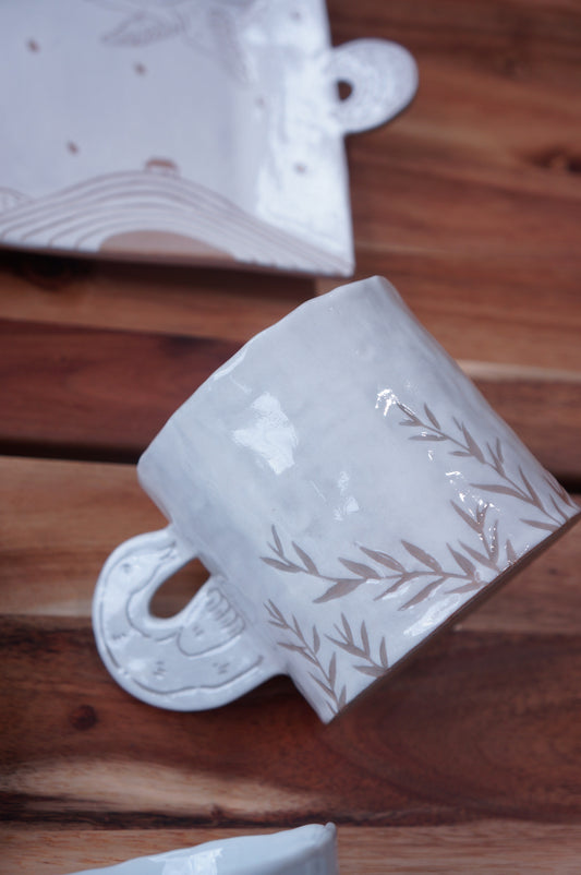 Jingdezhen | Erli | Panda Style Mug & Saucer | Leaf