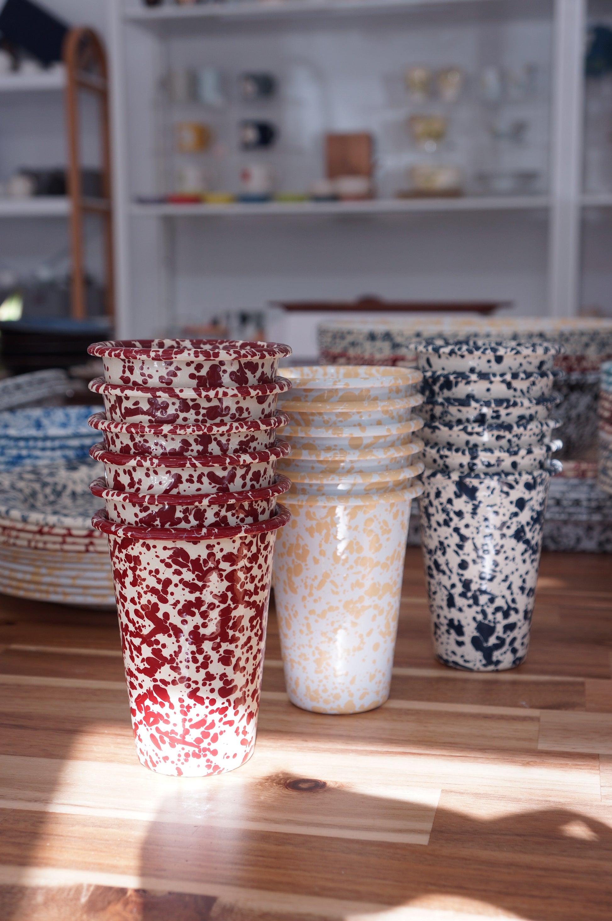 If those chips could talk, they’d tell your family’s stories. Like all fine ceramic materials, our enamelware will chip if it’s dropped or handled too roughly – but not to worry, the steel core won’t shatter and any chips are only skin deep. Pieces with these “beauty marks” are still perfectly usable and pose no danger of lead or other materials leeching out. Some people prefer the antique look of chips (in fact, some manufacturers purposely distress their products) and some prefer their enamelware looking hot off the presses. But no matter which you prefer, your enamelware is good to go. Be sure to coat your enamelware in cooking oil to prevent rusting.