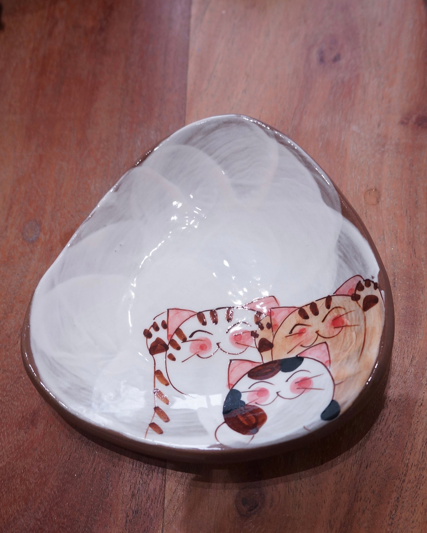 A series of "Friendly Cats" including a Japanese tortoiseshell cat. This convenient soup cup can be used in place of a bowl for salads, desserts, etc., in addition to soups with a lot of ingredients. The wide, firm handle makes it easy for women to hold.
