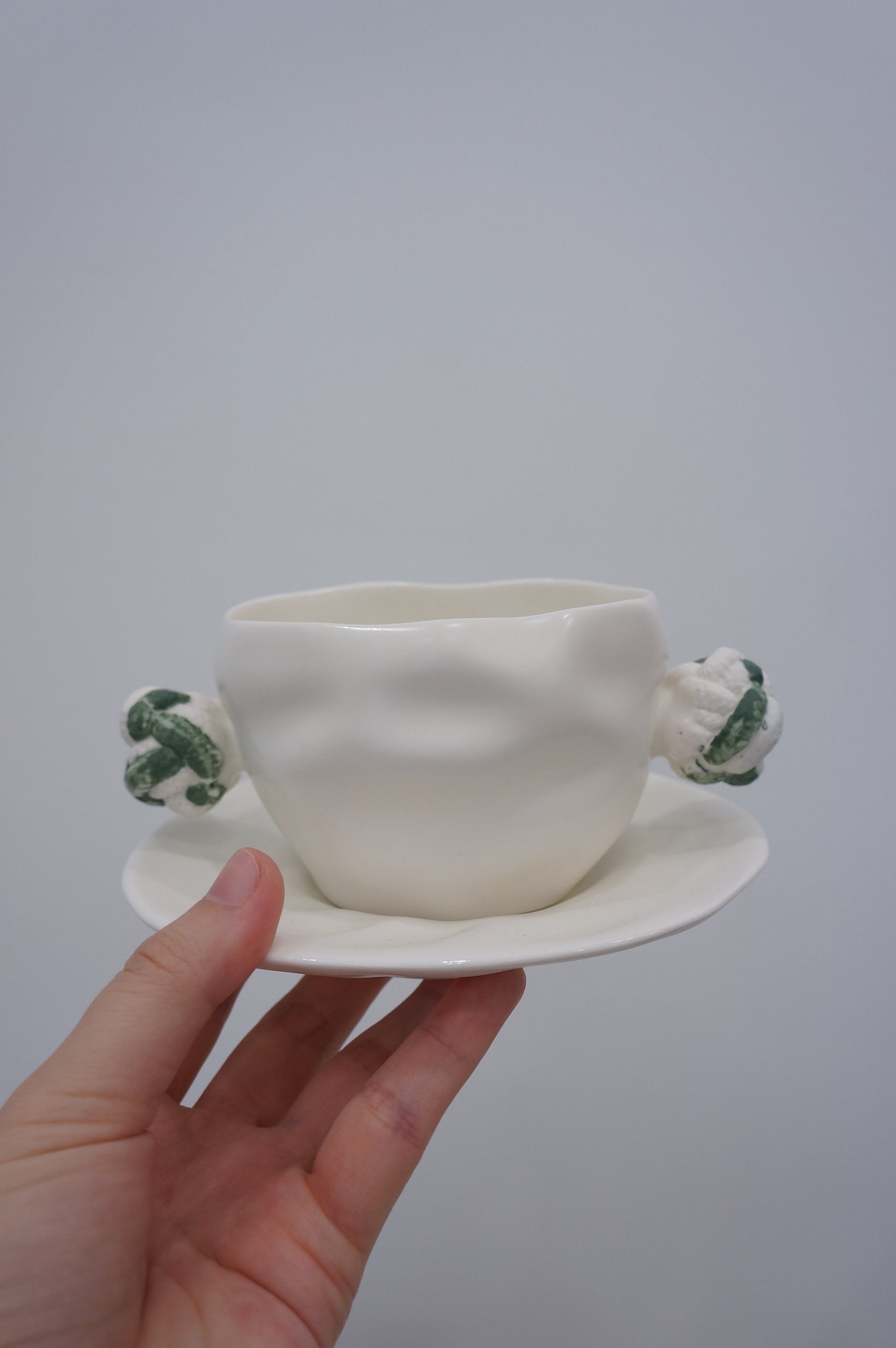 Jingdezhen | Gutou | Corrugation Double Ear Cup & Saucer